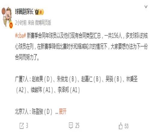 CBA新賽季將在12月12日拉開帷幕,根據媒體人球圈趙探長統計,新賽季有156位球員處在合同年,其中包括郭艾倫、陳盈...
