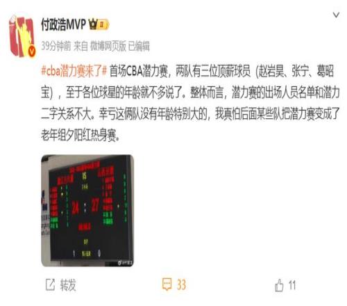 大量球迷在批評和嘲諷,就連一向站在CBA這邊的媒體人也有點繃不住,媒體人付政浩賽后更是給出了這樣的辣評:首場CBA潛力賽,兩隊有三位頂薪球員(趙巖昊、張寧、葛昭寶),至于各位球星的年齡就不多說了。整體而言,潛力賽的出場人員名單和潛力二字關系不大。幸虧這倆隊沒有年齡特別大的,我真怕后面某些隊把潛力賽變成了老年組夕陽紅熱身賽。