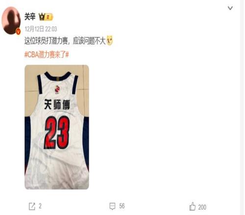 廣東隊的知名跟隊記者,報道CBA20多年的關辛也在賽后曬出了一張帶有他外號的球衣給出這樣的回應:這位球員打潛力賽,應該問題不大。